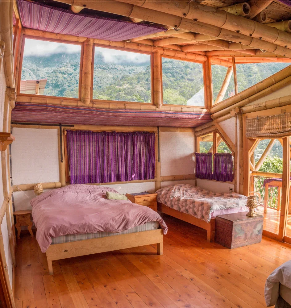 Bambu Guest House's private rooms offer the perfect retreat to relax and reconnect with nature, friends, or yourself. Bright and airy with abundant natural light, each room features large windows framing stunning views of Lake Atitlan and the surrounding volcanoes.